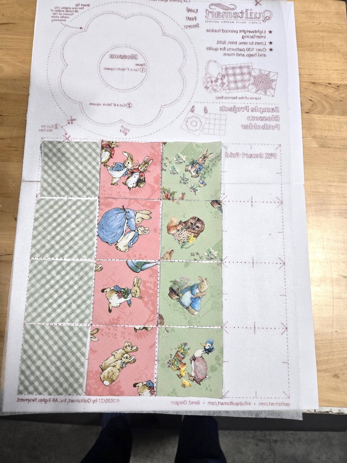 Lay the squares on the interfacing as I've shown in the above image. I only used 12 of the 16 squares for this project.