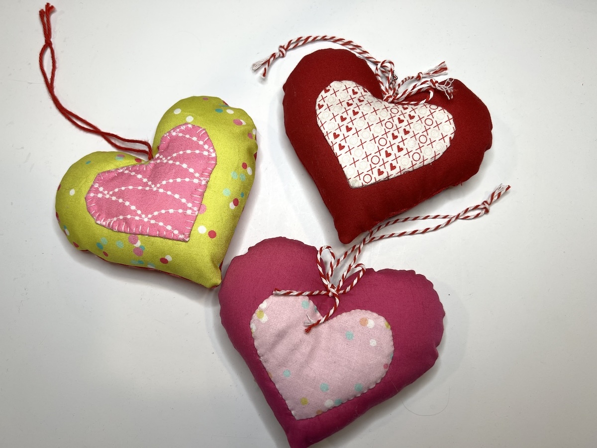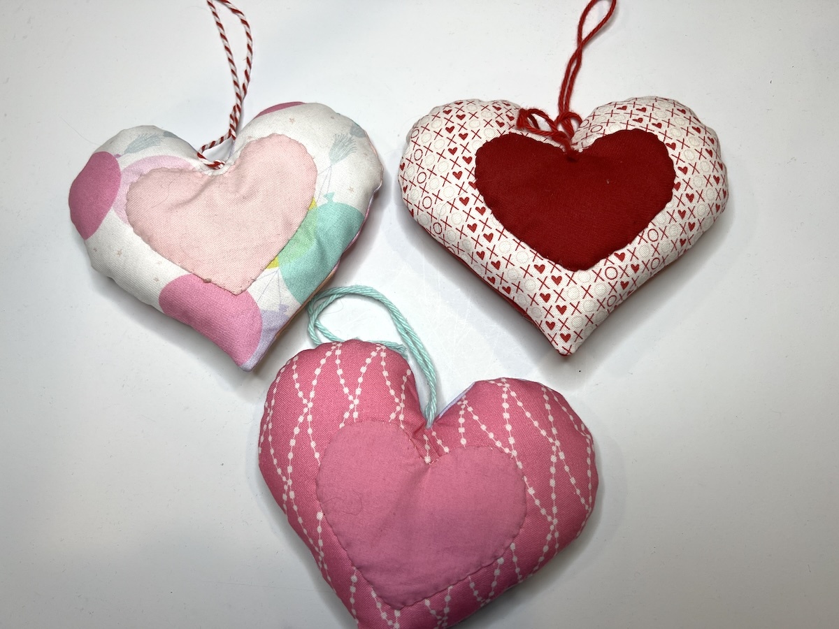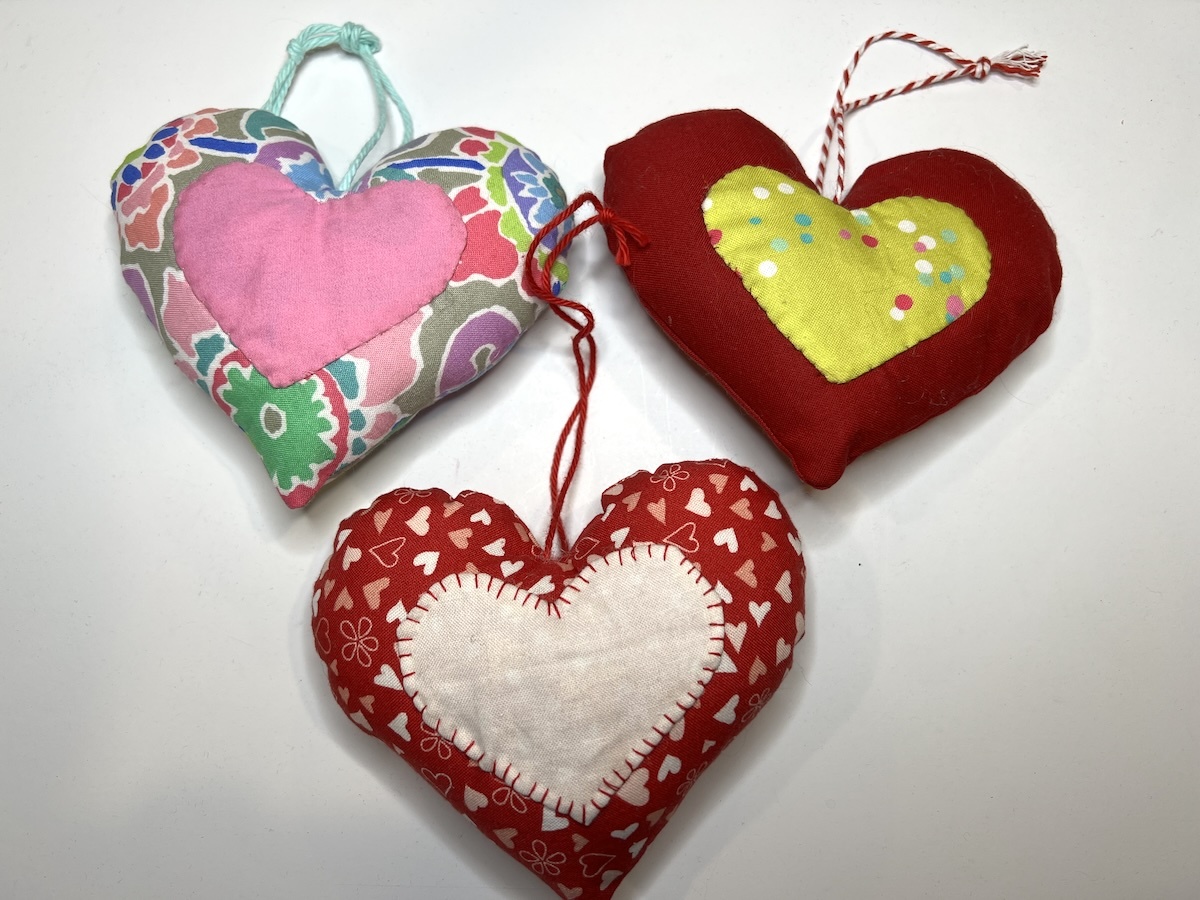 TIP: If you stuff lightly, you can stitch the small heart to the larger heart by machine through all of the layers. This is the time to have fun with those built-in decorative stitches on your machine!