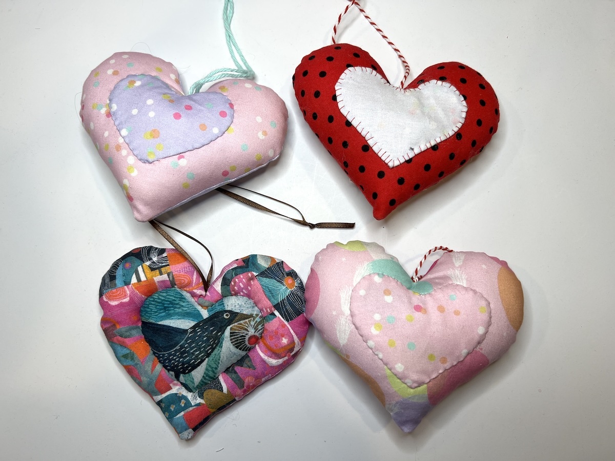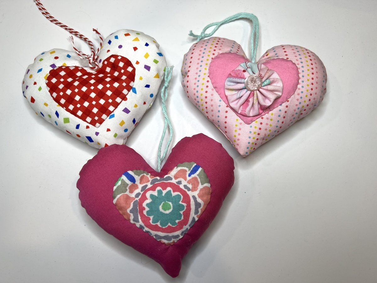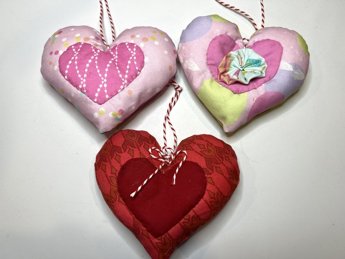 TIP: If you stuff lightly, you can stitch the small heart to the larger heart by machine through all of the layers. This is the time to have fun with those built-in decorative stitches on your machine!